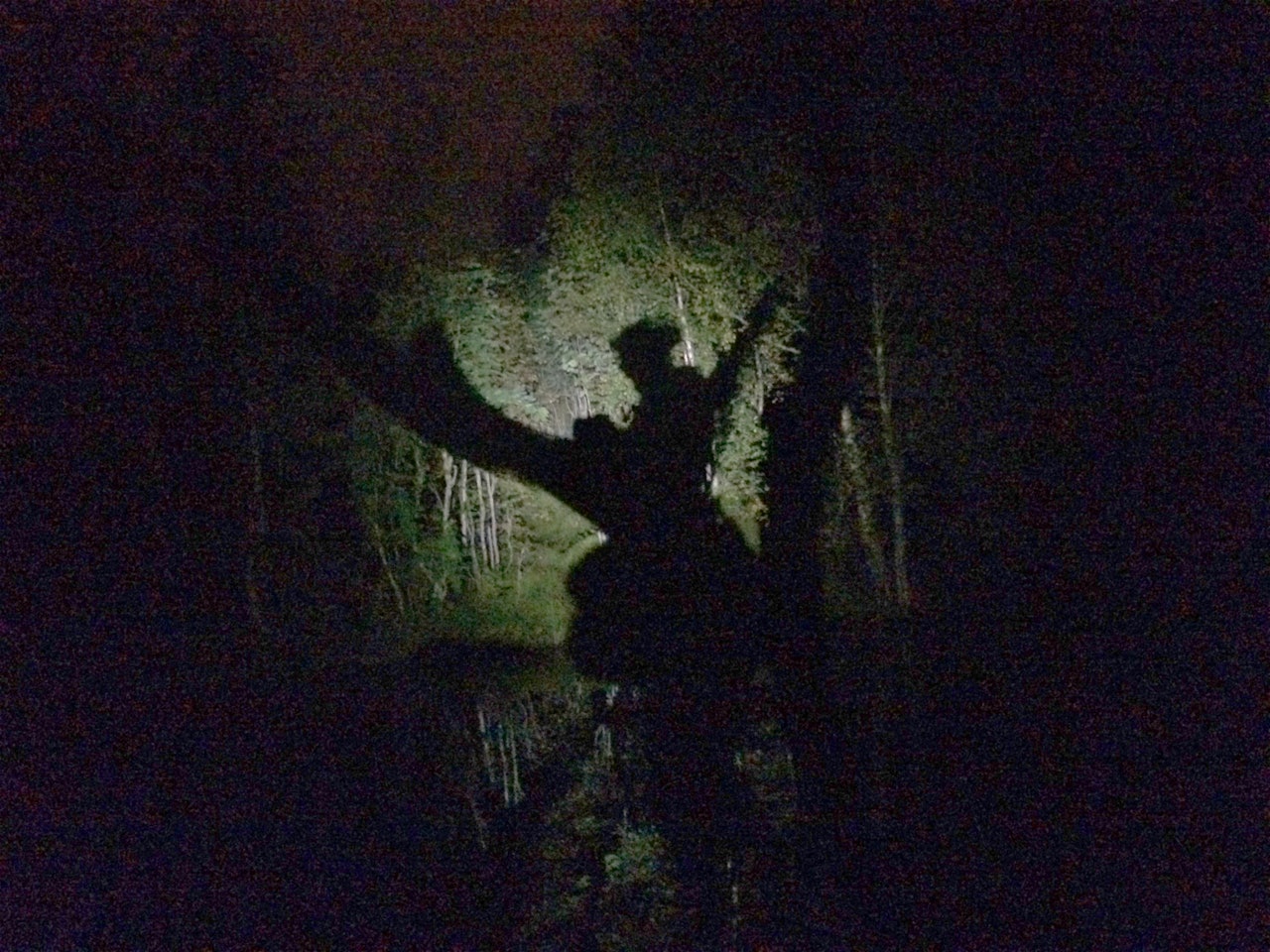 Det kjennes godt å skru hodelykten helt av, og la det bli helt mørkt omkring. Da blir man med ett litt mer usynlig, og glir inn i mørket. Litt som et dyr som gjemmer seg for mennesker vandrende på stien. Etter hvert kommer også nattsynet, sakte men sikkert. Da ser vi enda flere konturer i mørket, men ingen ser oss. Vi blir en del av naturens mørke skoger.