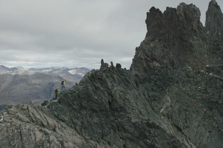 Den er fantastisk å komme opp på. Der er liten plass, og tinderekka med fin travers mot Åbittind 1396, kjem tett innpå ein.