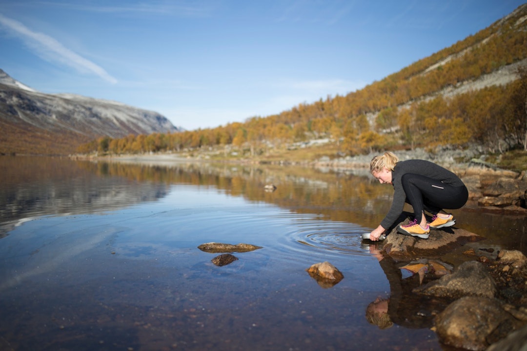 Morgenen etter: Vi kravlet ut av teltet, fikk morgensola midt i fleisen, strakk oss mot himmelen og vasket ansiktet i glassklart fjellvann. Det var en sånn dag, september og shortsvær.