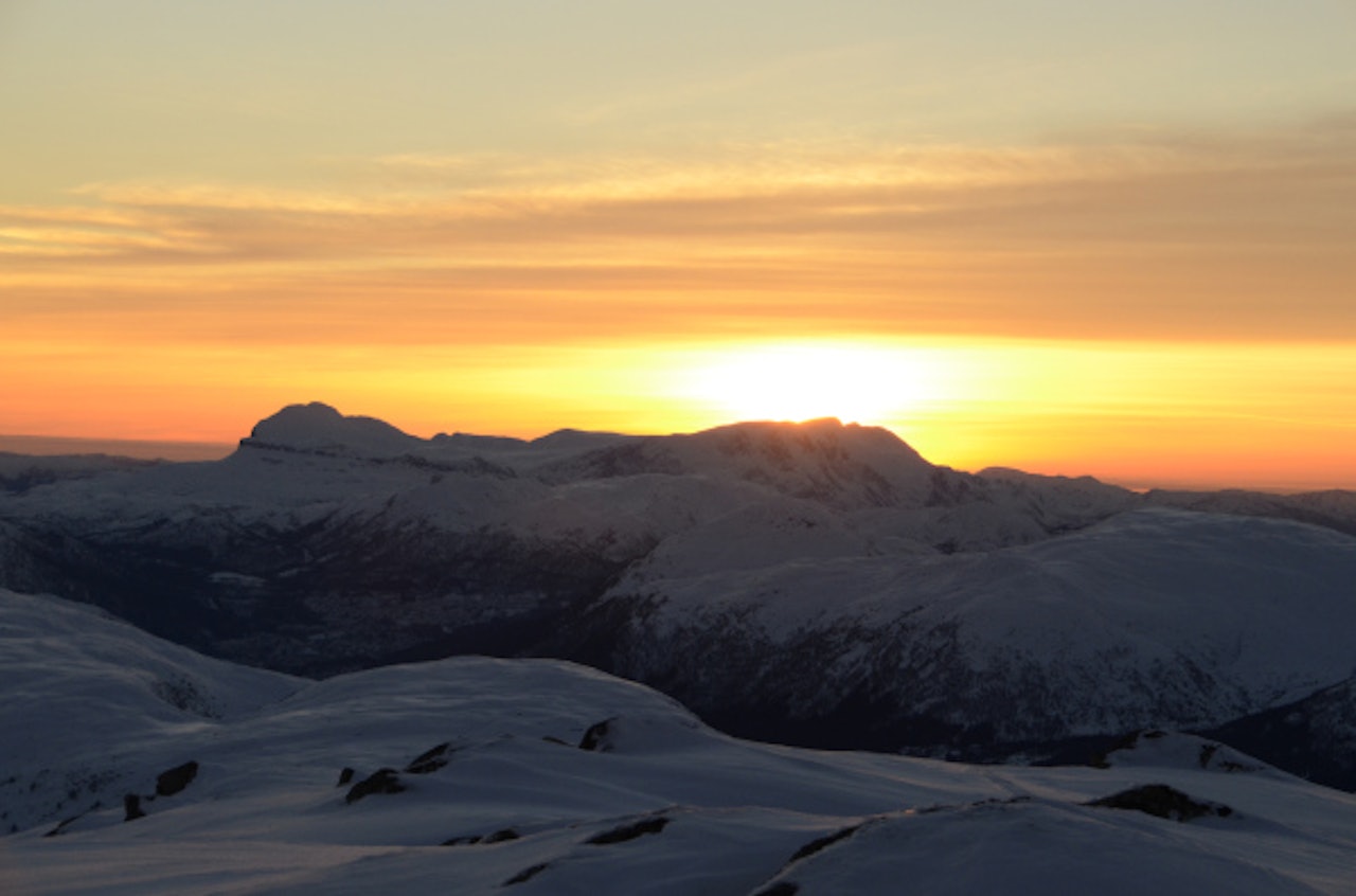 Da hjelper det skikkelig med dager som denne. Jeg er i Førde noen dager, der sola har vært strålende, og snøen glitret. Etter jobb har vi tatt toppturskiene med oss på ettermiddagstur. Turen til Tindefjellet ble måneskinnstur, og plutselig har jeg fått ny energi til resten av jobbuka!