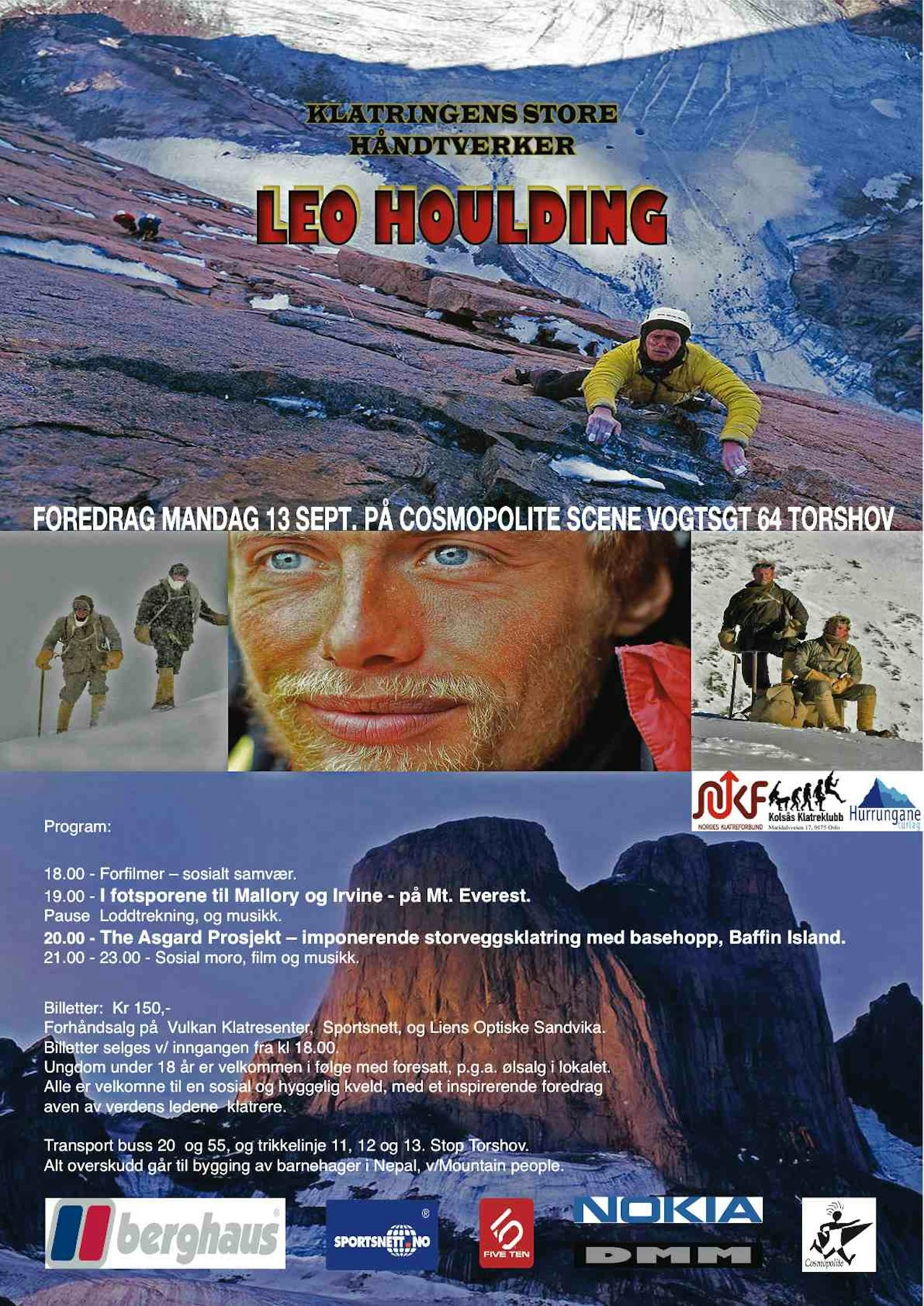 Om du ikke har sikret deg billett til Fjellfilm, kan du få med deg foredraget hans i Oslo mandag 13. september, på Cosmopolite scene på Torshov. Her får du en helaften, med foredrag fra Houldings spektakulære bestigning og basehopp-retur på Mount Asgard, på Baffin Island i Canada.