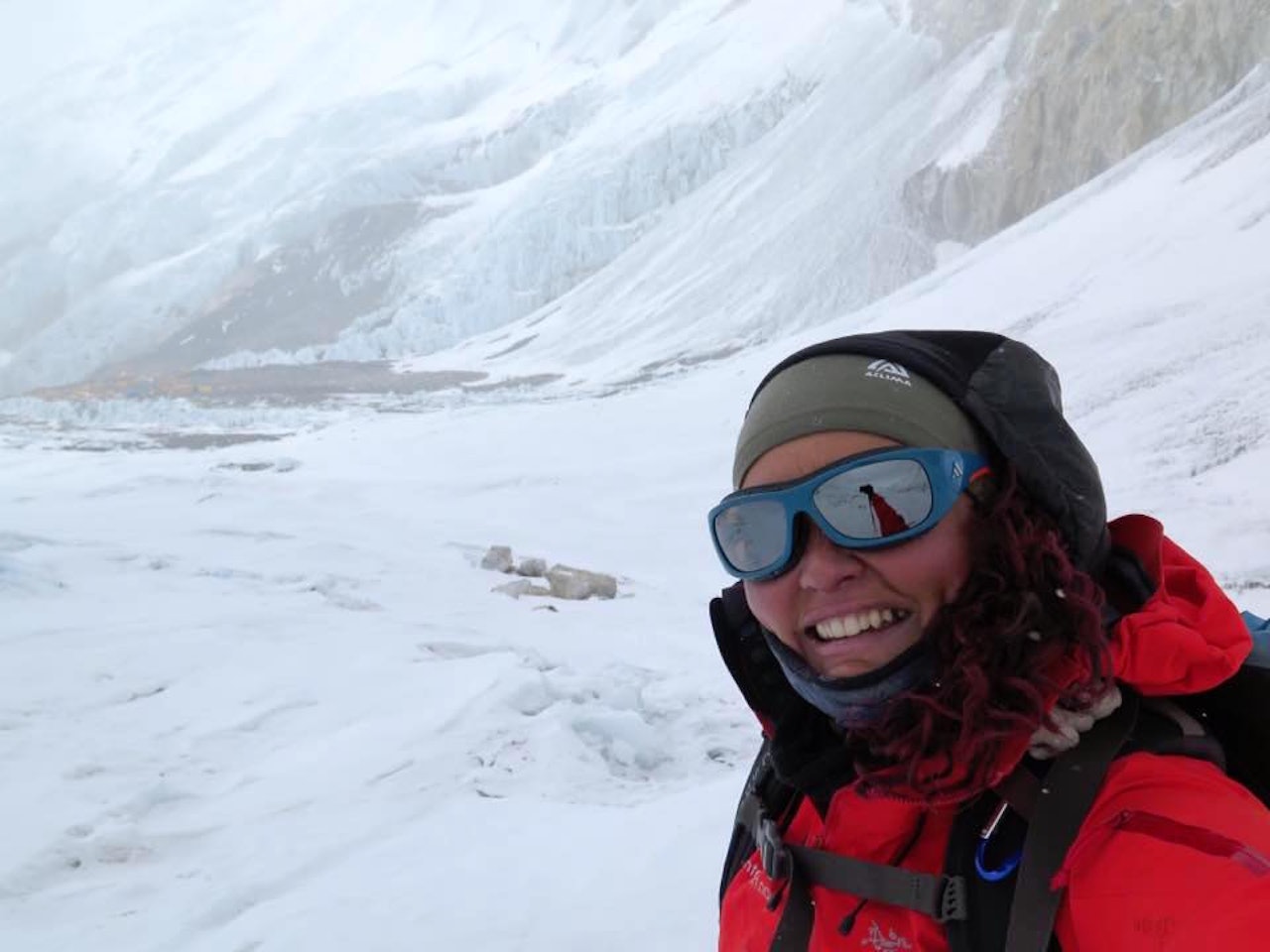 – Turen til Lhotse var en stor glede. Det føltes som jeg var i konstant lykke-rus og full av energi på topp-støtet. Været var vekslende, men med lite vind. Det var en fin dag som ikke var altfor varm. Selve klatreruta opp syns jeg er veldig fin for den er vekslende og går inn i vakre Lhotse Couloir som er ei bratt renne opp mot toppen. Skyene bygde seg opp og drev ut og inn med snøbyger til oss, men de siste meterne før toppen klarner det opp og vi fikk nyte den fantastiske utsikten utover alle de andre flotte fjellene i strålende sol og nesten vindstille! Og det var om enn enda vakrere og mer magisk å klatre tilbake til Camp 4 i solnedgang. Jeg klatret den dagen sammen med Temba og vi brukte bare to timer ned og var tilbake i teltet etter 12 timer i veggen. Neste dag var det 17.mai – hipp HURRA! Selv om været ikke var noe å rope hurra for; det hadde blåst opp kraftig, så vi skrinla planen om å klatre videre opp til Everest og klatret istedet ned for å vente på neste vær-vindu.