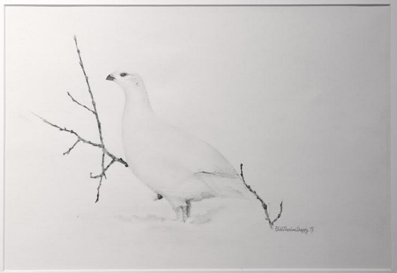Blandt små bjørkekvister som stikker opp gjennom snøen, synes lirypa (Lagopus lagopus), og fjellrypa (Lagopus muta), i sin vinterlige drakt.