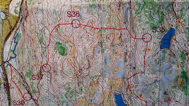 Jeg har såvidt fått tilbake pusten, før Askild tar over kartet og sikter seg inn på den neste. Han foran, og jeg bak. Vi løper der det går, og trasker over ur og busker der det trengs. Noe på sti, noe utenom. Jeg glemmer å se på klokka. 4,5 timer er rekorden ute på turorientering, før jeg kom på at jeg måtte få i meg noe å spise.