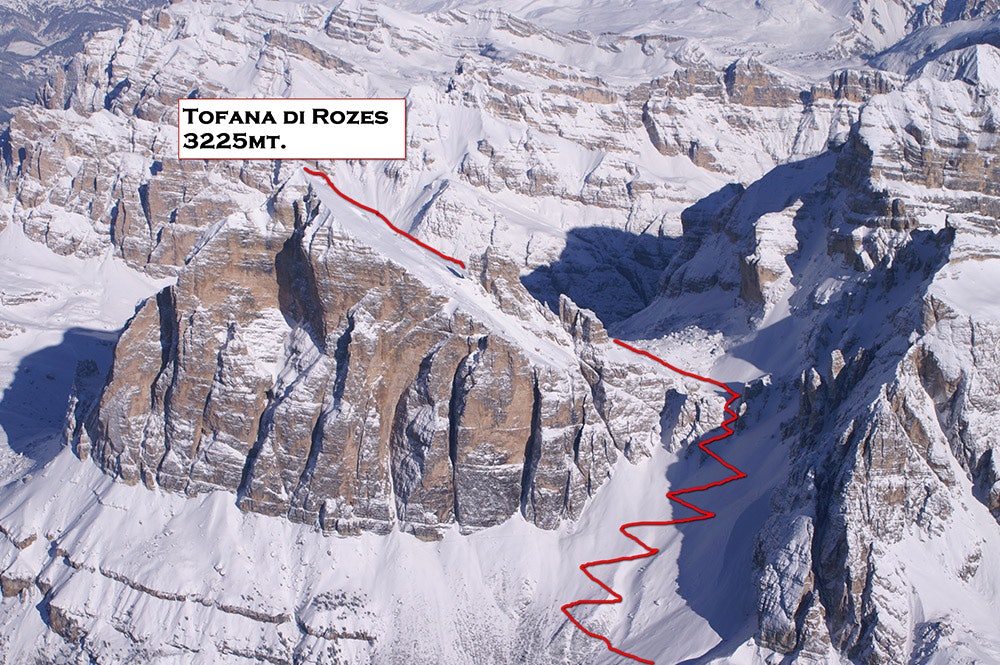 Det mye omtalte og vakre fjellet Tofana de Rozes (3225 moh.) i Tofane-kjeden er på lista til en hver randofrelst i Cortina. Fjellet kan tilnærmes på en rekke måter, men den mest kjente ruten inkluderer en travers som går gjennom et naturlig «vindu» i fjellet. Man tar først heis og kjører ned den kjente frikjøringsruten Bus di Tofana. Ved rifugio Giussani festes fellene og turen opp den nordøstlige siden starter. En jevn stigning som når toppen via rygg. På toppen får du en utsikt av de sjeldne. Nedkjøring samme vei.