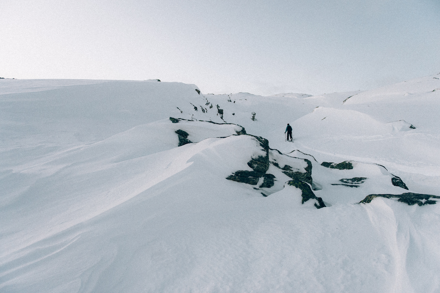 Vinden gav oss følelsen av å være veldig små i fjellene, selv om både risiko og konsekvens var på bunnivå. Føret gav mestringsfølelse, og mørketidslyset gjør seg på bilder.