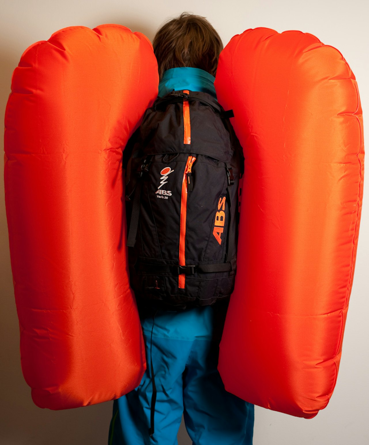 SIKKERHET: ABS er systemet som er utviklet gjennom 25 år. Ballongene blåses opp i løpet av tre sekunder, kommer ut av borrelåsåpninger på hver side av sekken og blir hengende som to vinger på siden av sekken. ABS var i mange år alene om å tilby skredballonger, og statistikken taler for seg. 98 prosent av de som klarer å løse ut ballongen overlever skredet, de fleste helt uskadd. Mer enn 150 skredofre skal ha overlevd på denne måten. Statistikken så langt viser at ti prosent av de som blir tatt ikke klarer å løse ut ballongen. For å gjøre dette lettere har ABS laget en pyroteknisk løsning (en liten sprengladning), slik at det nå trengs bare fem millimeters bevegelse i utløserhendelen for at ballongene blåses opp. ABS er nå blitt utfordret av SnowPulse, men mener de fremdeles har den beste løsningen på hvordan en skredballong. ABS har to ballonger, som beveger seg fleksibelt og tar imot mye av belastningen du blir utsatt for i et skred. Siden ballongene henger på siden, vil de ikke påvirke synsfeltet i det du for eksempel forsøker å kjøre fra skredet. Den pyrotekniske utløsermekanismen skal gjøre det lettere å få den til å gjøre jobben når du trenger den. Mens SnowPulse er opptatt av å beskytte hode og nakke, mener ABS at deres løsning gjør at du blir liggende mer vannrett med kroppen i overflaten av skredet med hele kroppen og dermed er mindre utsatt for mekaniske skader. De viser dessuten til at det ikke er noen hode- og nakkeskader i statistikken over de som er berget i skred ved bruk av ABS.