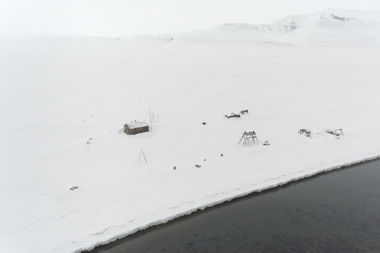 Idet jeg svinger inn mot land, kommer Harald ruslende på plankestien over blautmyra ned mot sjøkanten dyttende på den gamle trillebåren. Han løfter armen til hilsen mens jeg fester landingshjulene bakpå hekken og lar motoren surre de få meterne inn mot bredden, jumper over bord og drar gummibåten opp i fjæresteinene. Vi håndhilser som vi alltid gjør, han ønsker velkommen til Kapp Wijk, og jeg finner fram to bokser øl, rekker ham én og åpner den andre. Vi slår oss til der ved sjøkanten, halvt liggende i den tørre grusen.