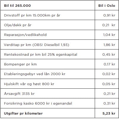 NAF har satt opp regnestykket for utgifter med bil. Med disse tallene blir sammenligningen gjort ut fra alle kostnadene på bilen: