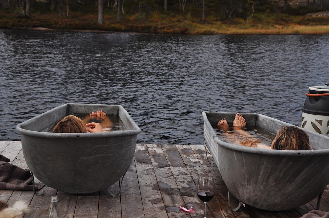 Når du kommer tilbake til hotellet er det slett ikke over. Da venter badstue og et forfriskende bad i tjernet. Middagen er noe av det beste vi har smakt på lenge.