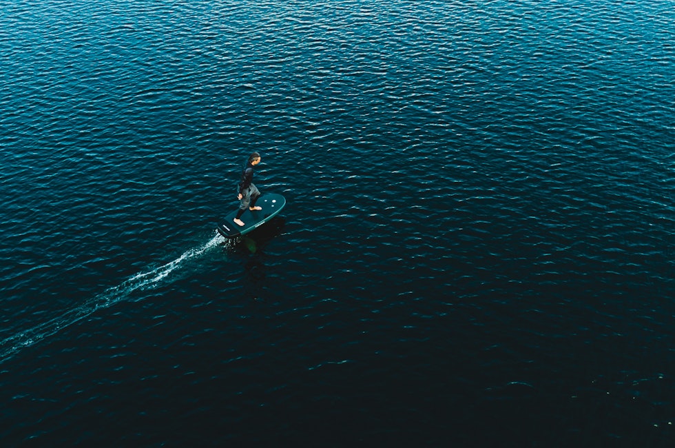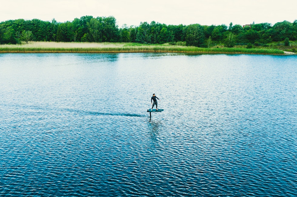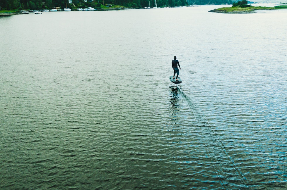 Du trenger verken vind, bølger eller muskelkraft. Efoil består av et batteri, en motor, en propell og et brett påmontert hydrofoil. Med fremdrift fra propellen, vil hydrofoilen løfte deg ut av vannet, slik at du nærmest flyr bortover.