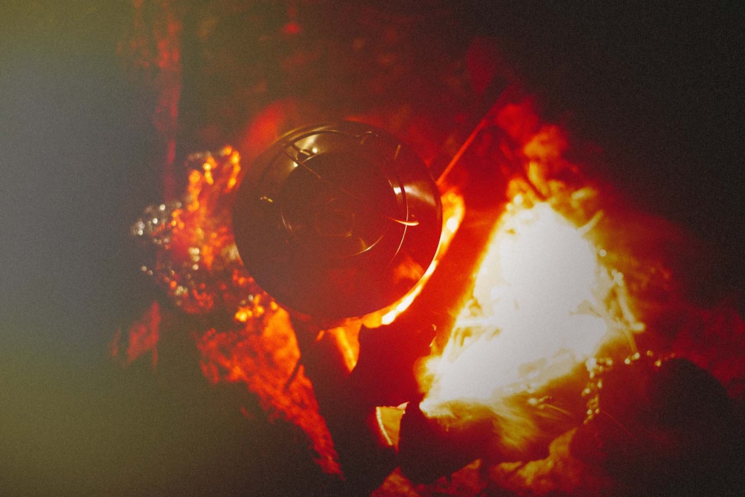 Også de har bål. Inntil glørne ligger polarbrød med brie i aluminiumsfolie.