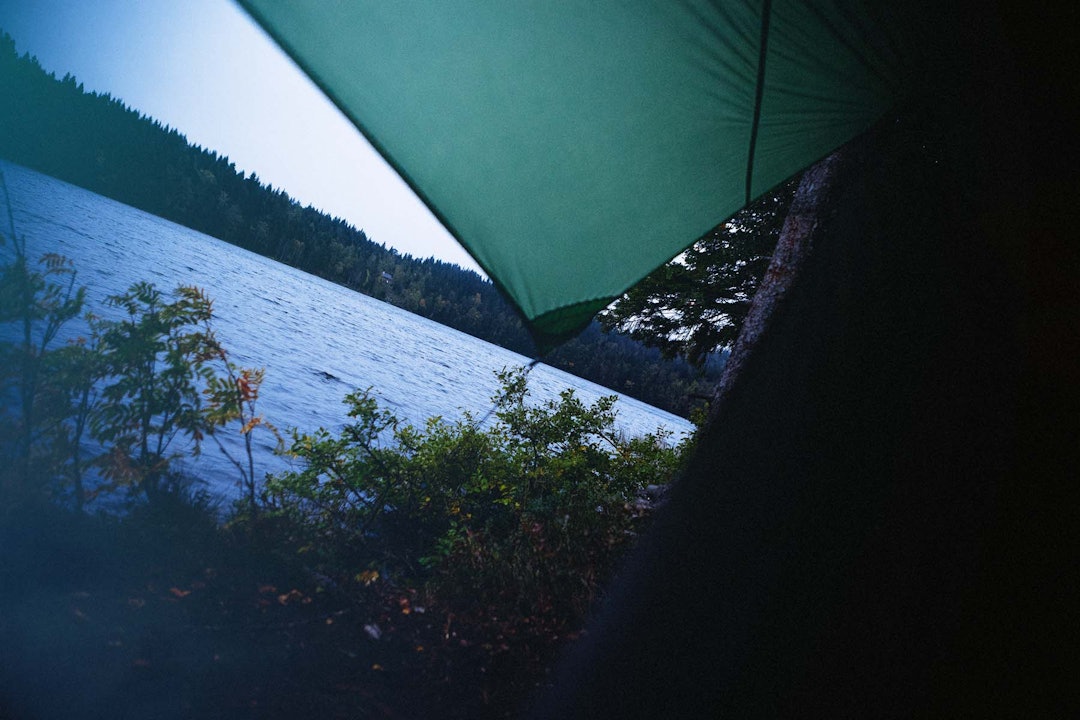 Det er ikke snakk om skogens ro akkurat, for det blafrer lett i tarp-duken.